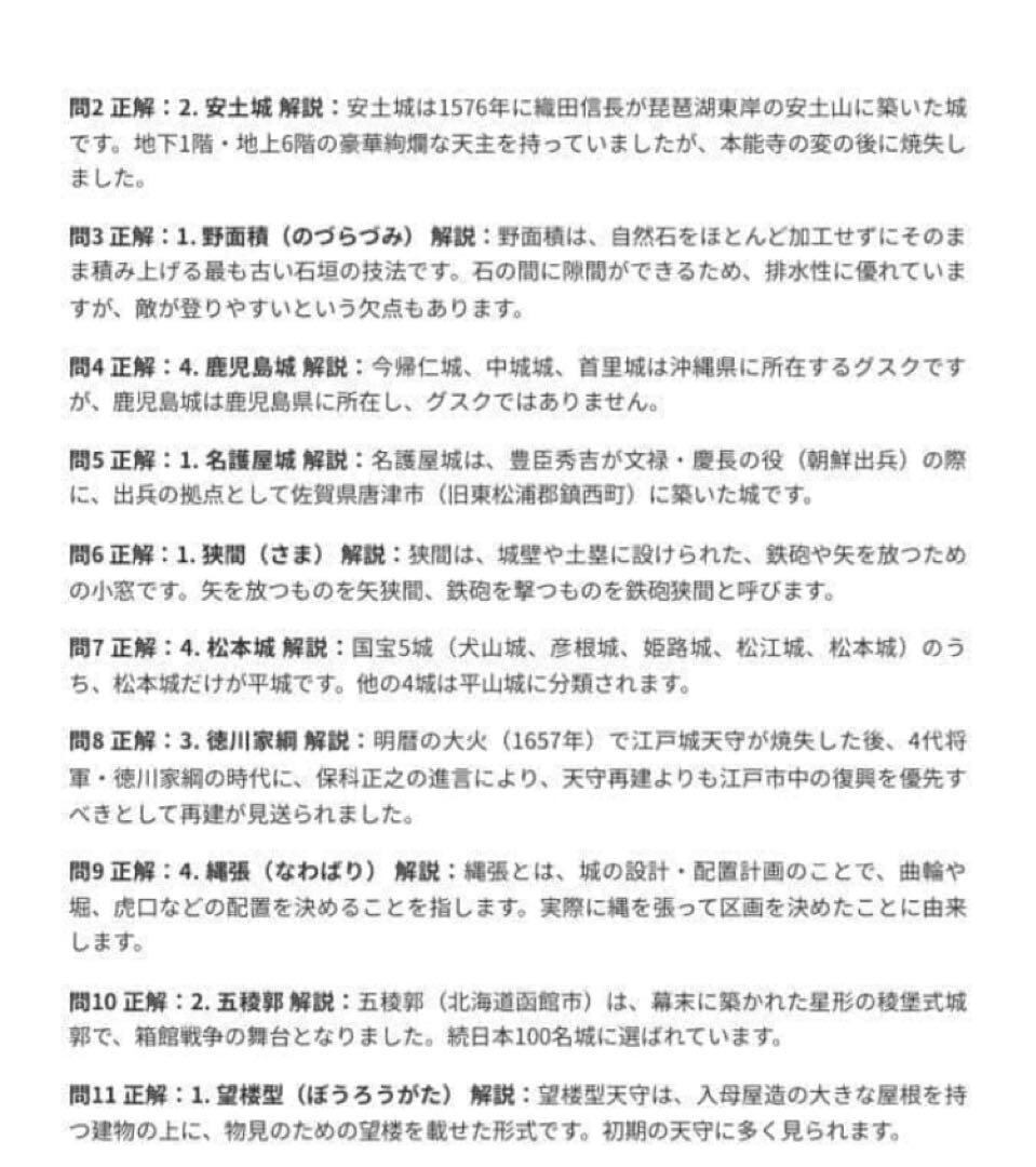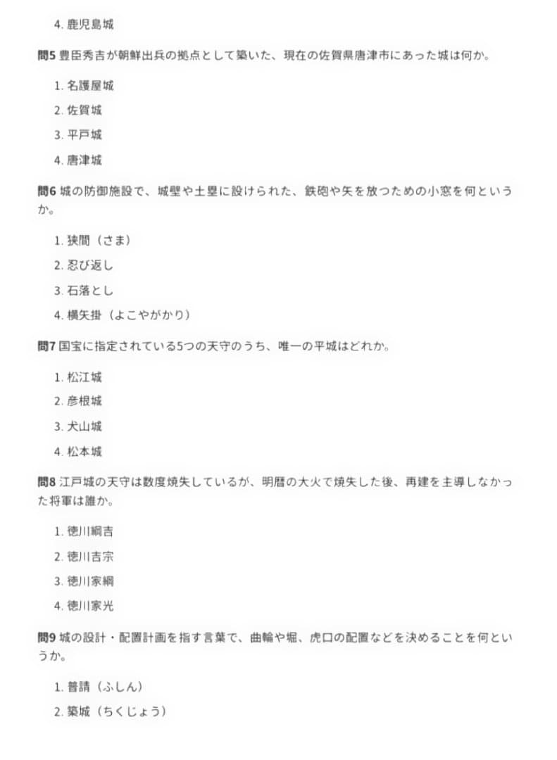 【日本城郭検定 1級〜準1級】試験対策問題集 (200問) 解答解説付き