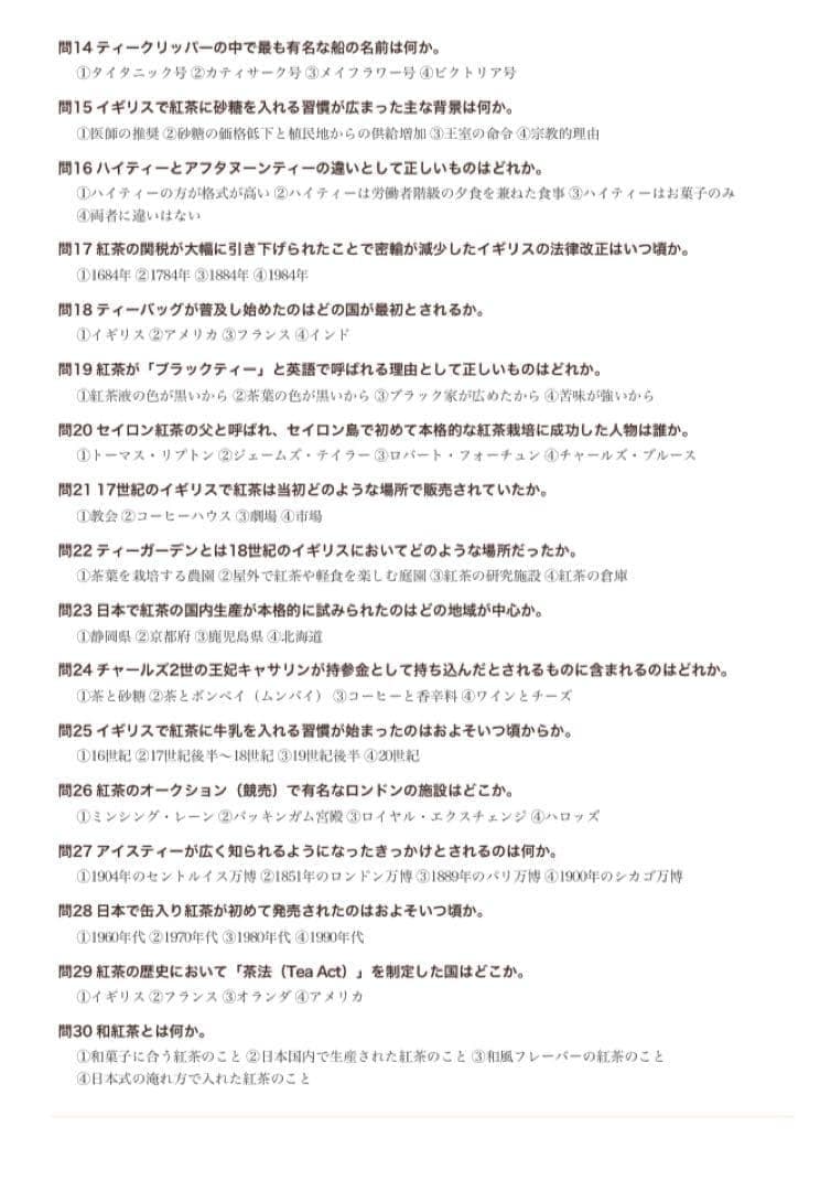 【紅茶検定アドバンス級】試験直前対策問題集 300問)解答解説付き 即日発送!