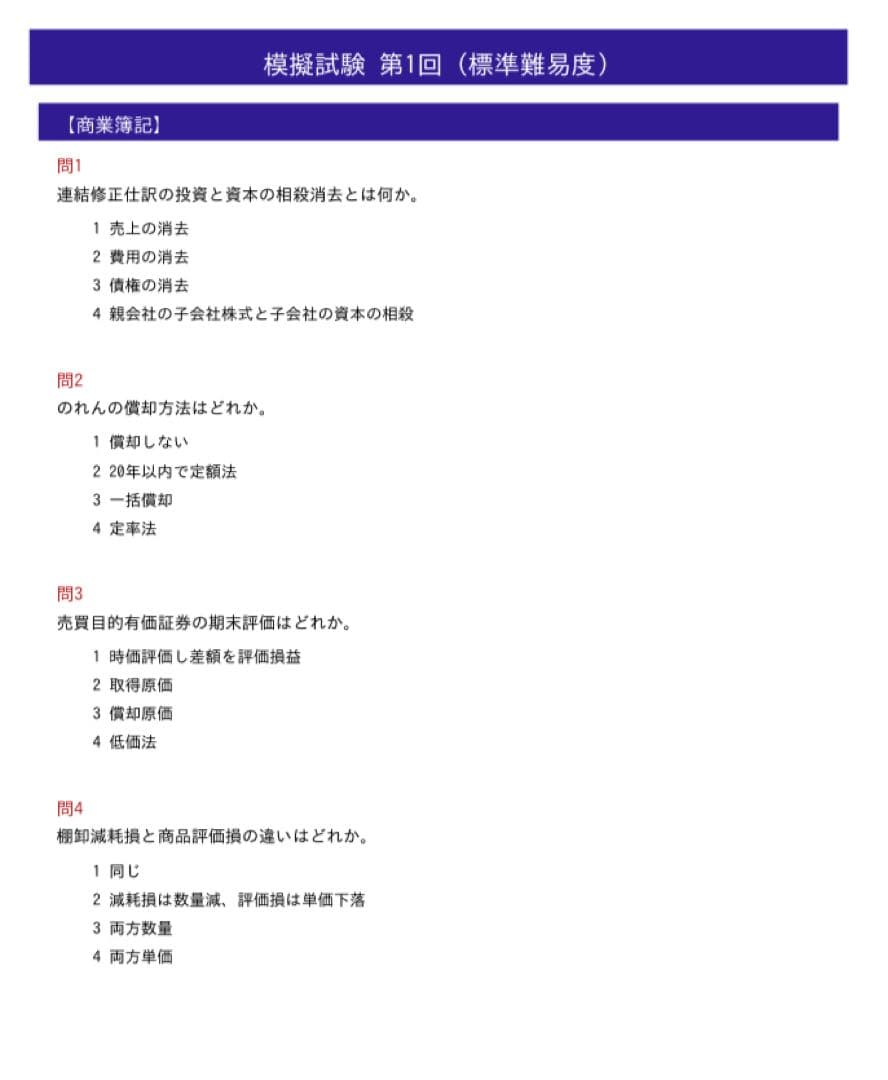 【日商簿記2級】試験対策問題集 400問300問+模擬試験50問 x 2回