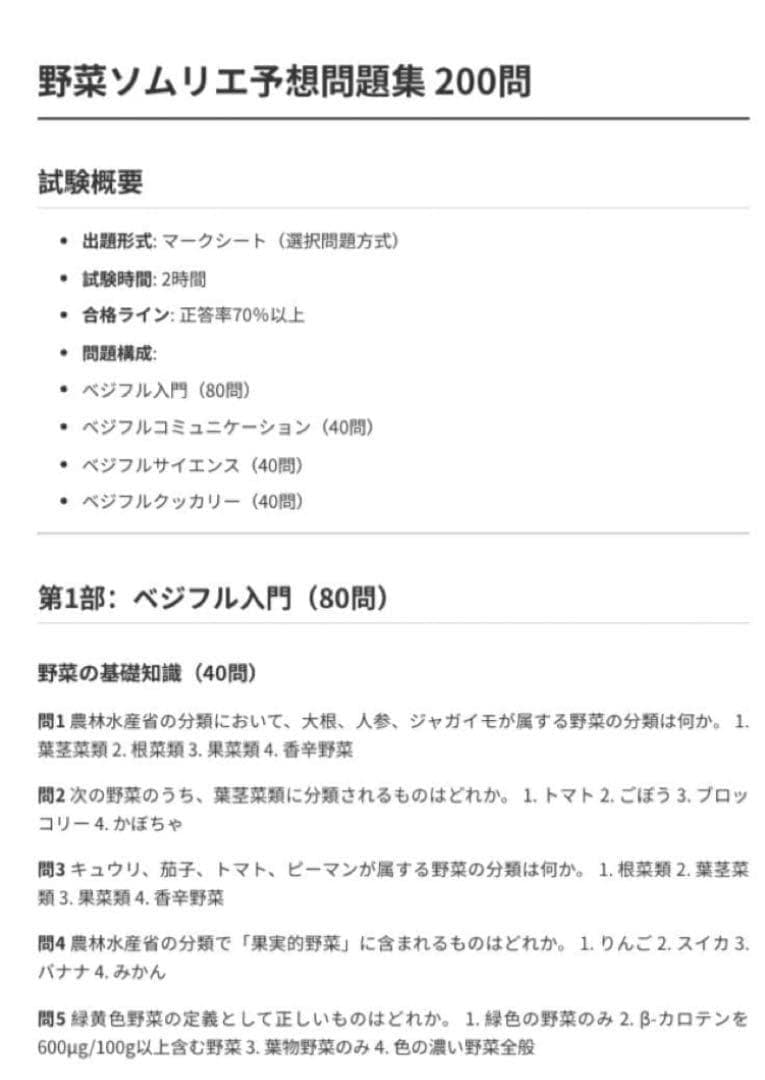 [OK] 野菜ソムリエ試験の実際の出題範囲に基づいて作成