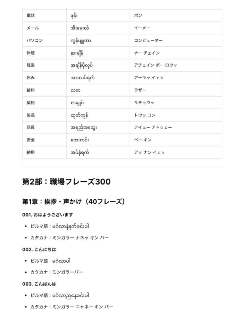 ・ これからミャンマーへの進出や駐在を予定しており、短期間で語彙を増やしたい方。