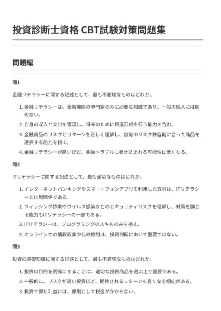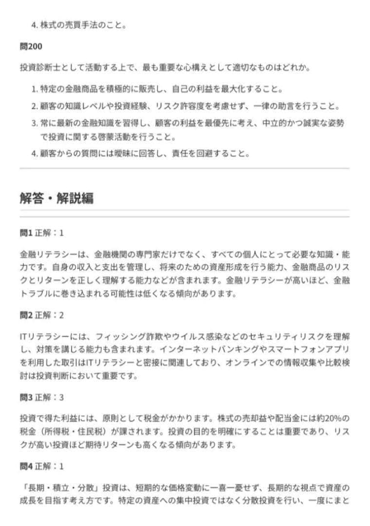 ・ 第1章:投資の基礎とリテラシー(問1〜40)