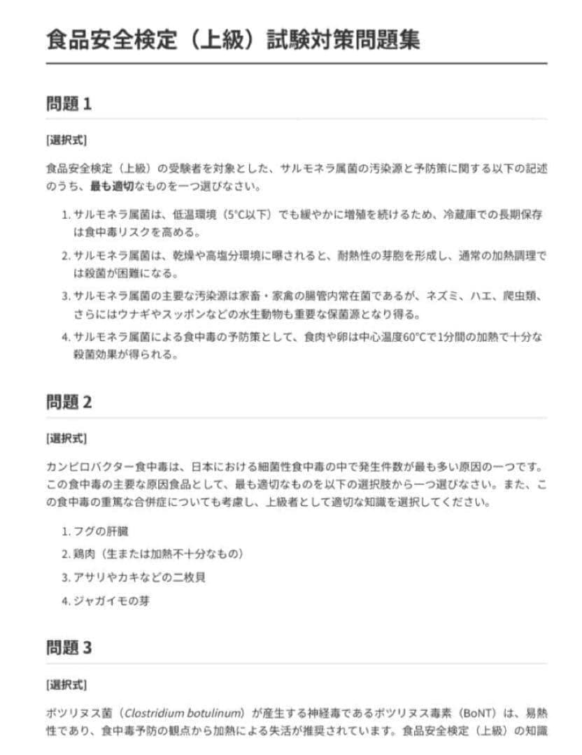 【食品安全検定(上級)】試験対策問題集200問 解答解説付き
