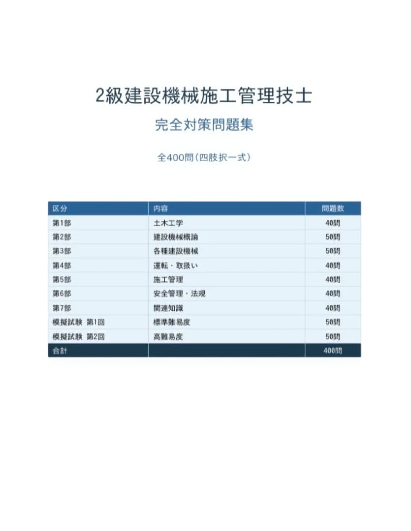 2級建設機械施工管理技士対策問題集300問+模擬試験50問×2セット全400問