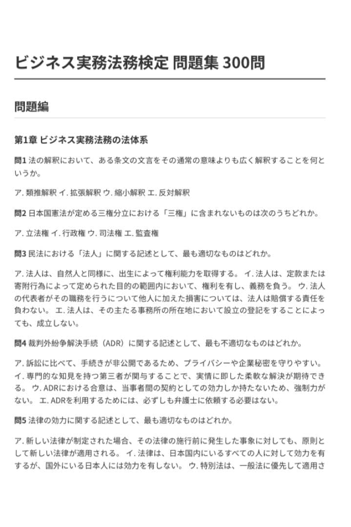 ビジネス実務法務検定問題集300問 回答・解説付き 2025 3級レベル