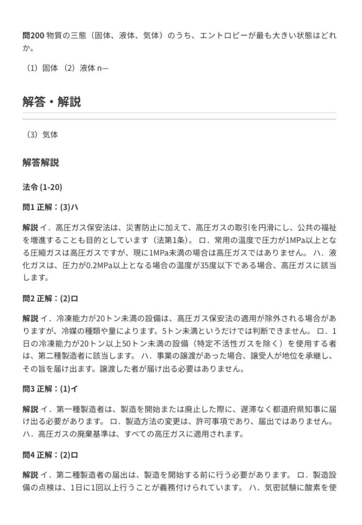 【第二種冷凍機械責任者】試験対策問題集200問 解答解説付き
