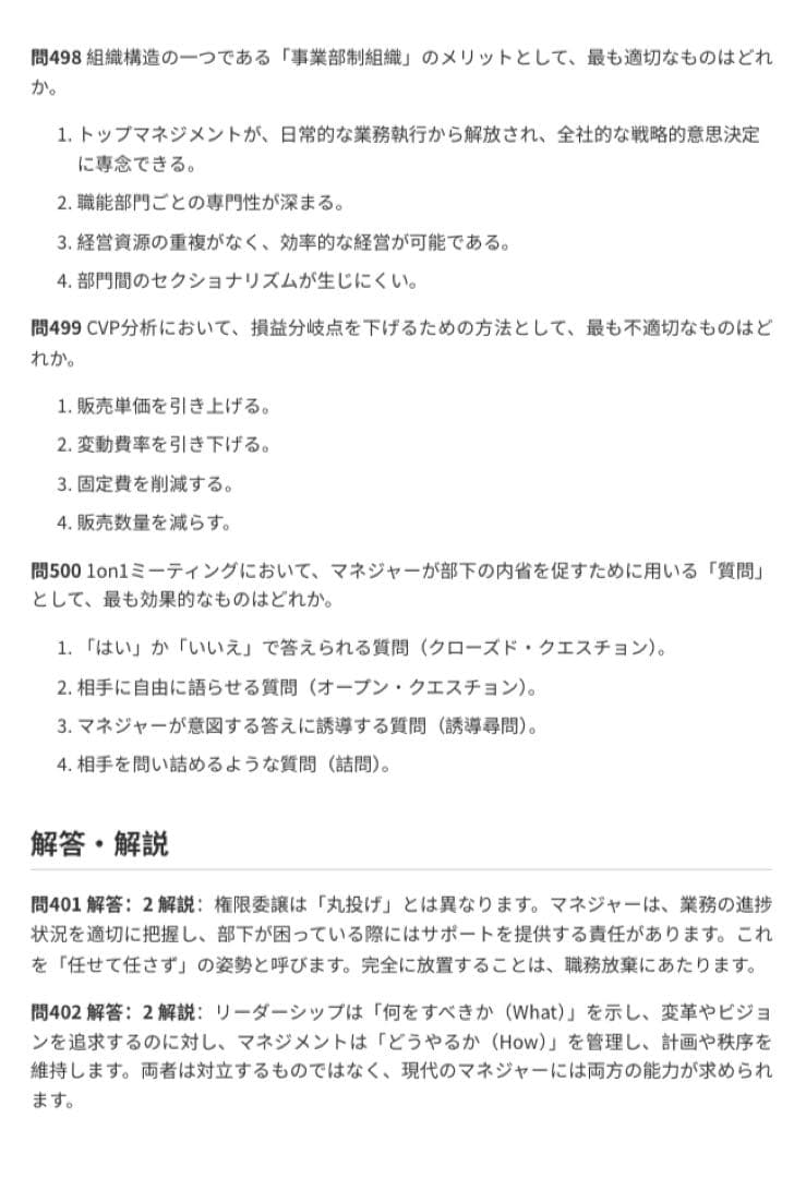 【ビジネスマネージャー検定試験問題集】「極」500問 211ページ 解答解説付き