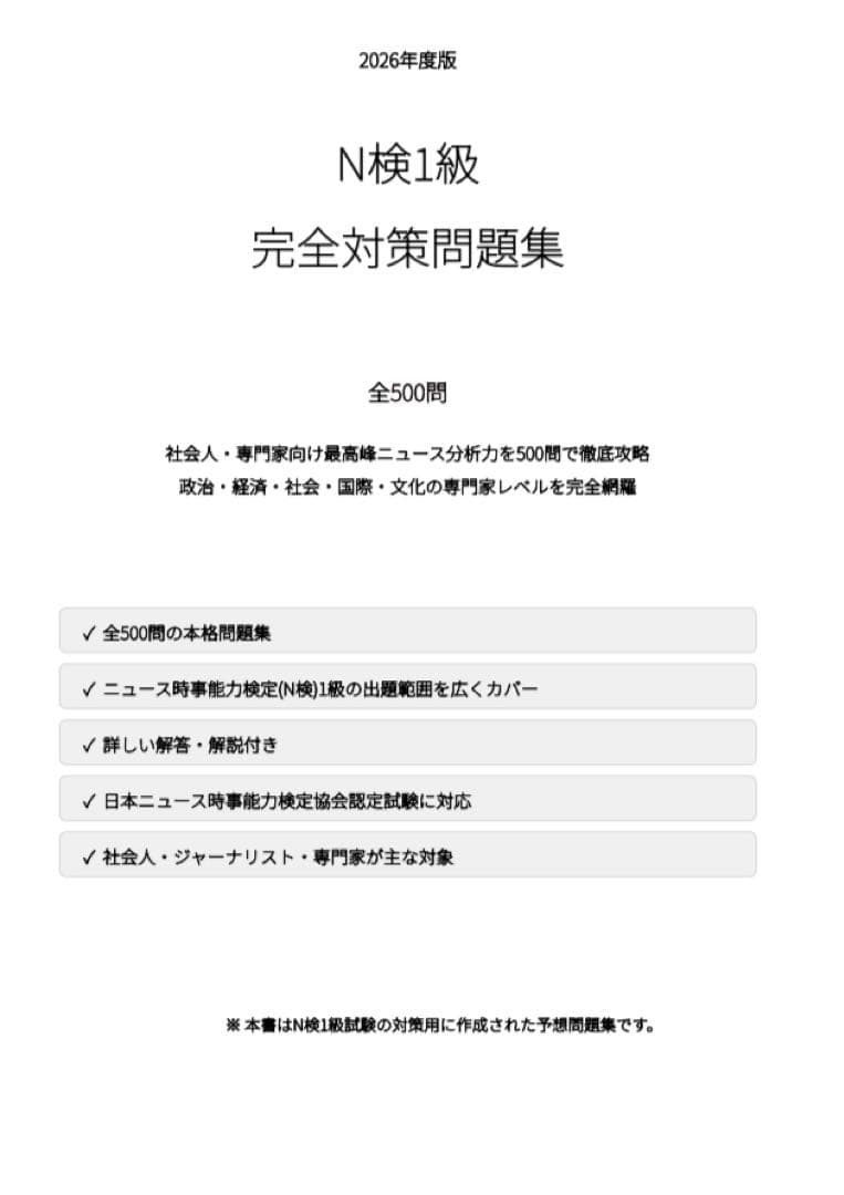 【N検1級(ニュース時事検定)】試験対策問題集500問 解答解説付き