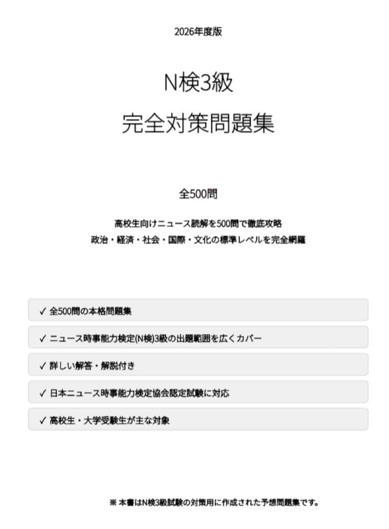 【N検3級(ニュース時事検定)】試験対策問題集500問 解答解説付き