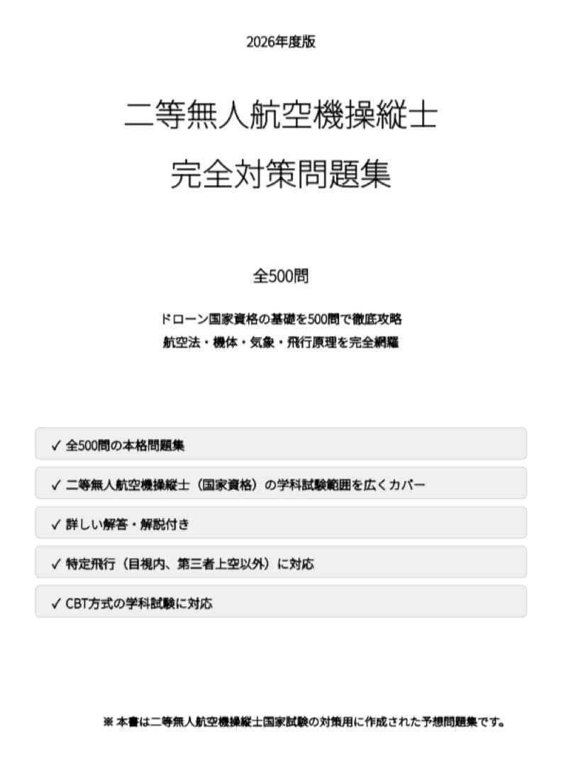 【二等無人航空機操縦士】試験対策問題集500問 解答解説付き