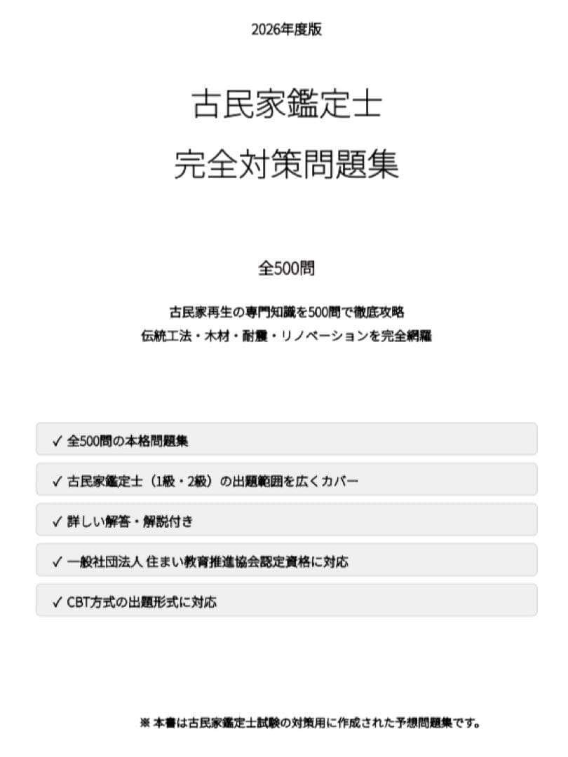 【古民家鑑定士】試験対策問題集500問 解答解説付き