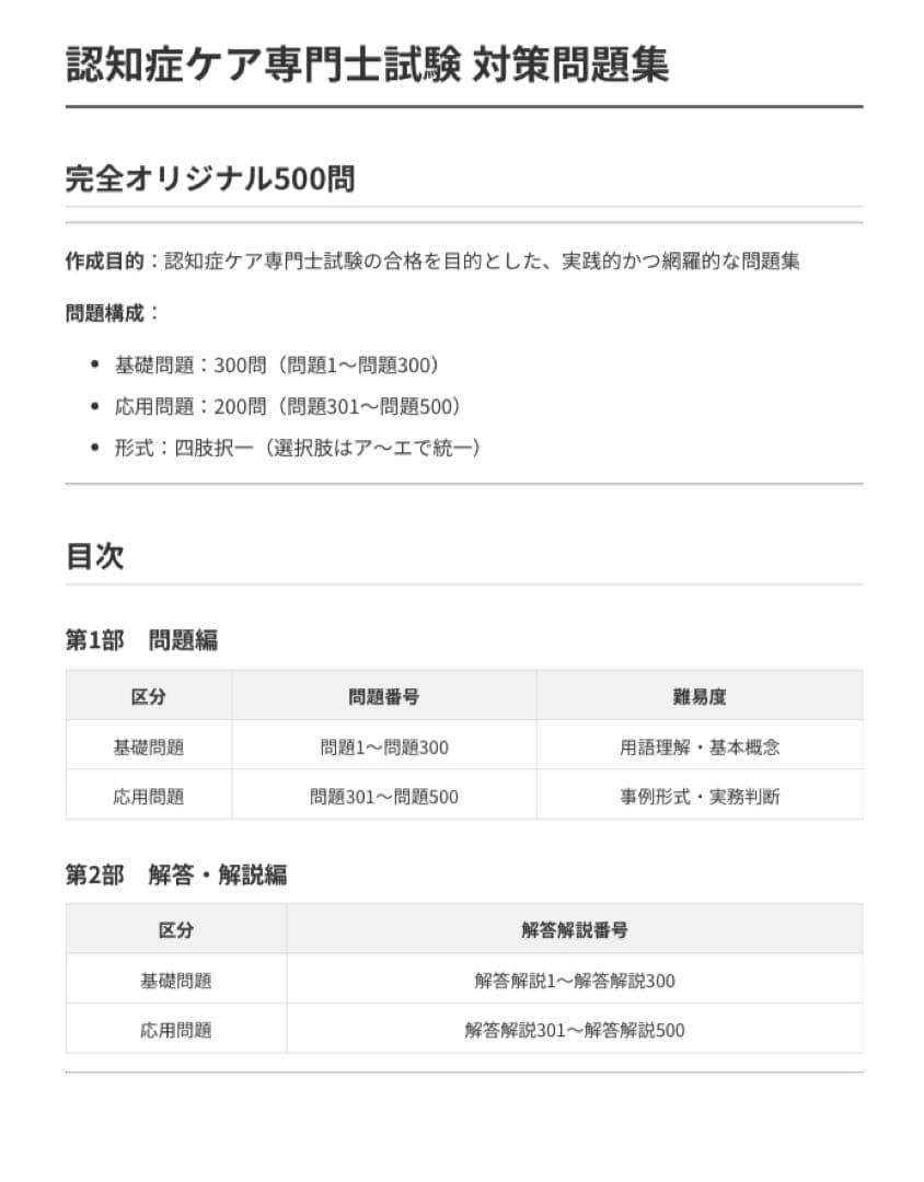 【認知症ケア専門士】試験対策問題集 500問解答解説付き227ページ2026年版