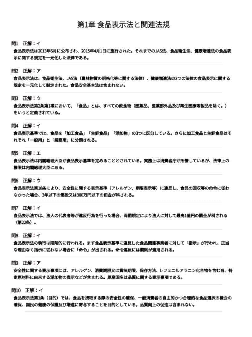 第1章 食品表示法と関連法規(65問)