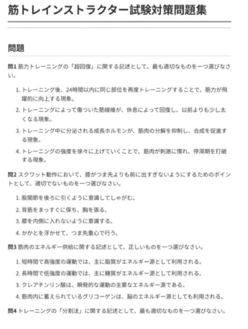 【筋トレインストラクター】試験対策問題集|全100問+解説つき