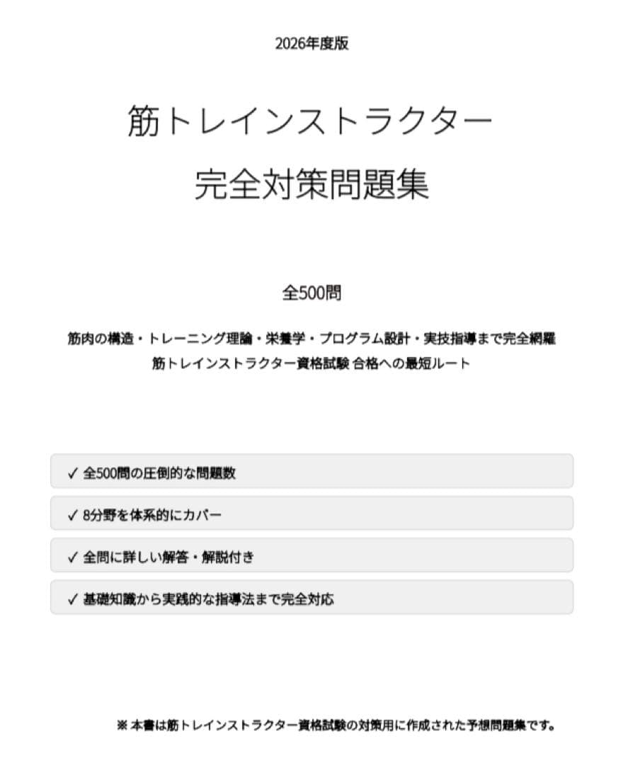 【筋トレインストラクター】試験対策問題集500問 解答解説付き
