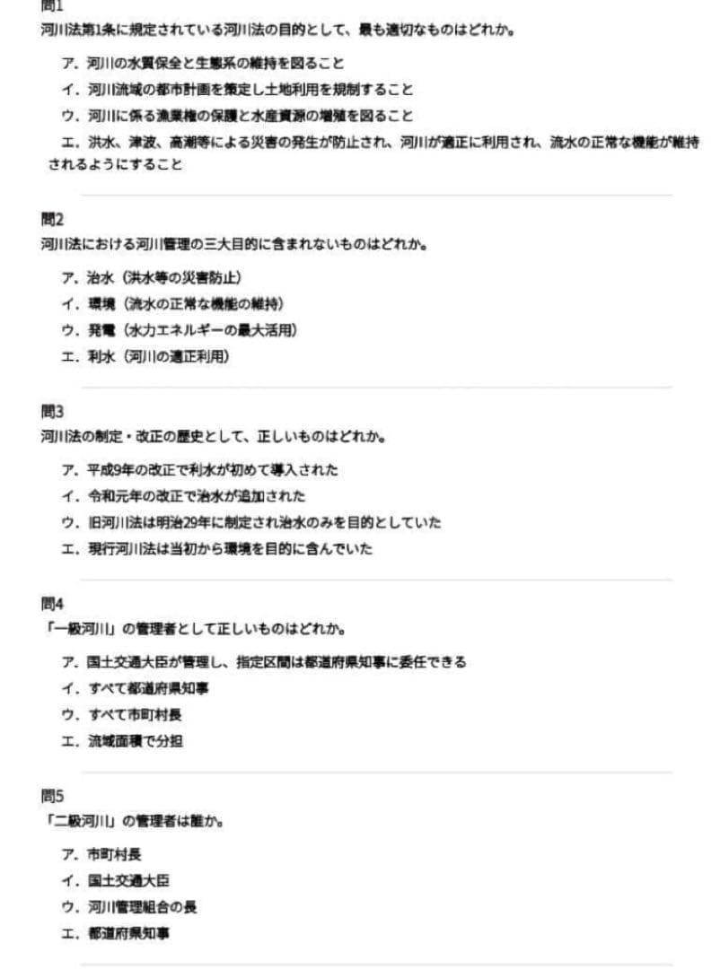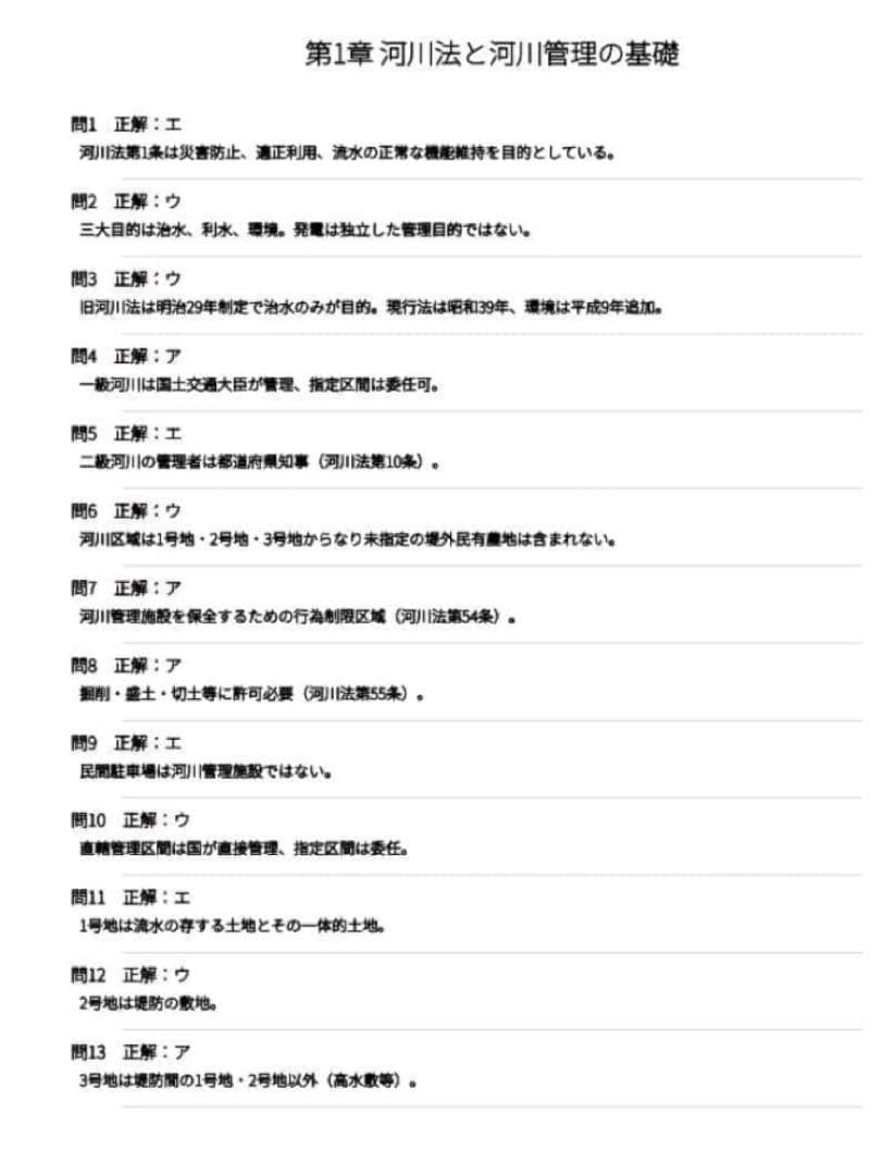 河川法、水防法、災害対策基本法、河川管理施設等構造令など、試験に必要な法令知識を70問で徹底的に学べます。