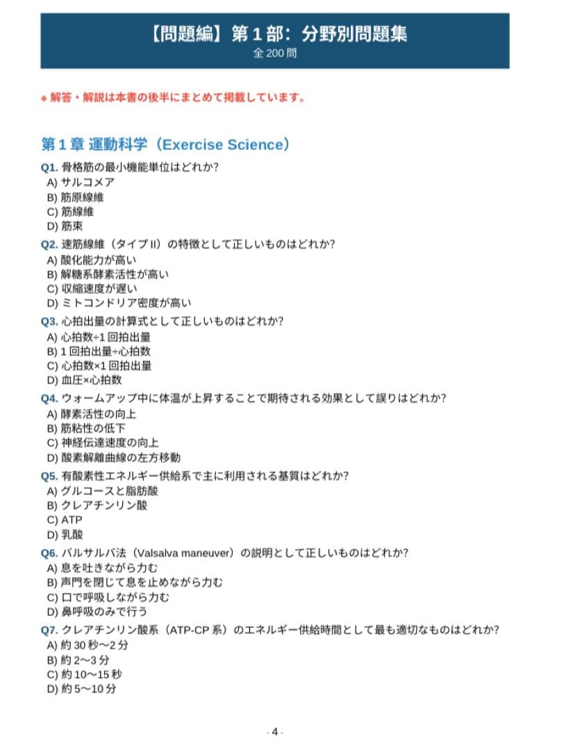 NSCA-CPT 問題集350問|分野別200問+模擬試験3回分|解説付