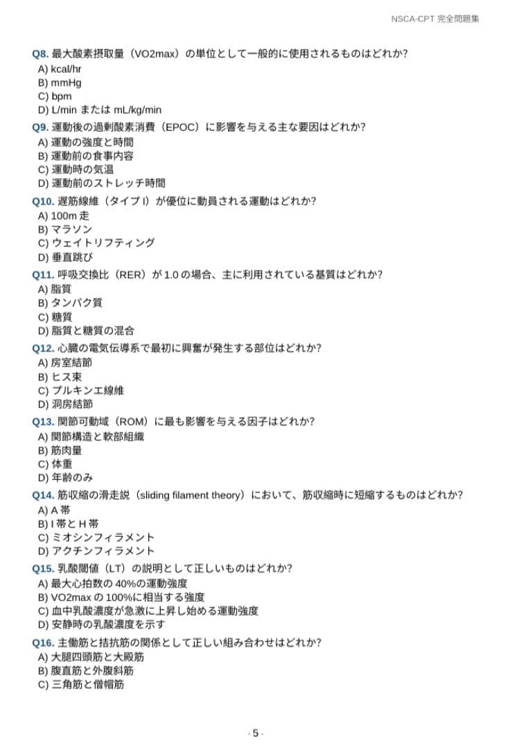NSCA認定パーソナルトレーナー(NSCA-CPT)試験対策の問題集です。