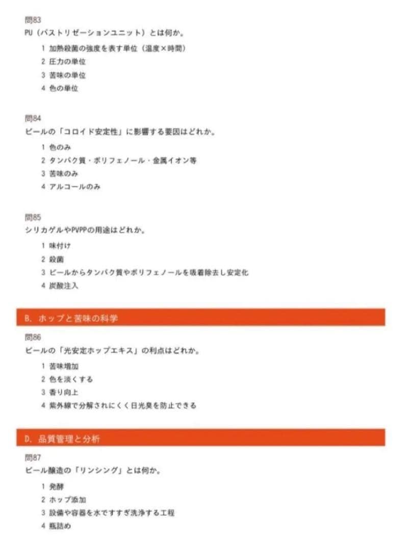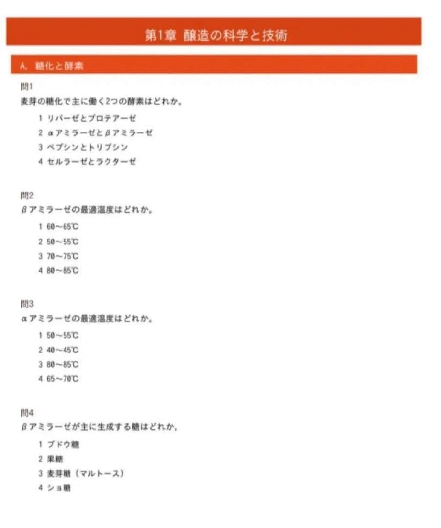 第1章:醸造の科学と技術 (100問)