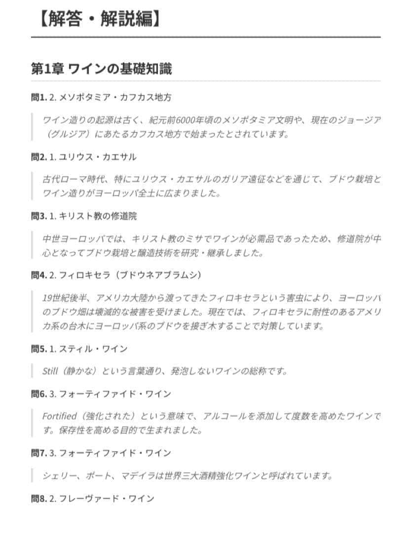 公式テキスト『ワイン入門』の内容に基づき、全300問を体系的に収録しています。