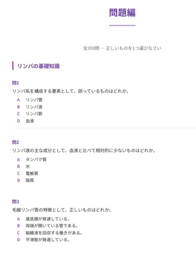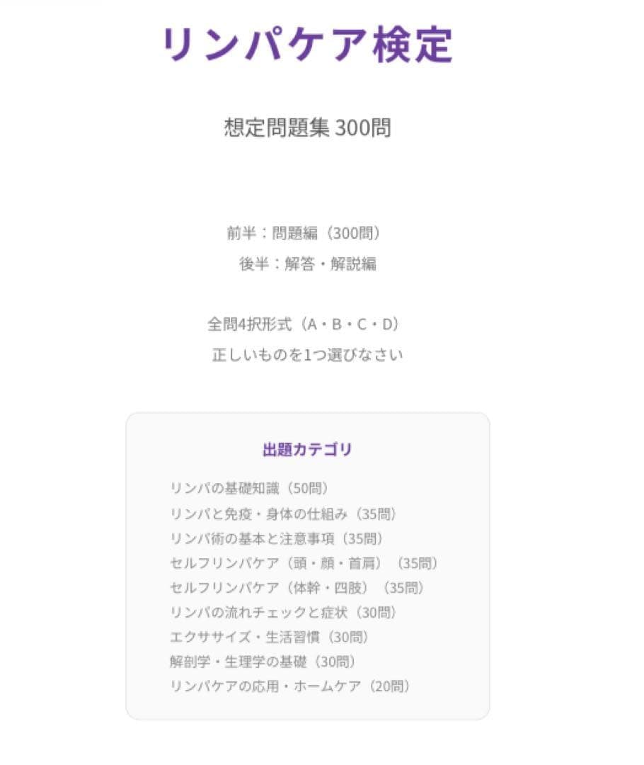 【リンパケア検定】試験対策問題集300問 解答解説付き