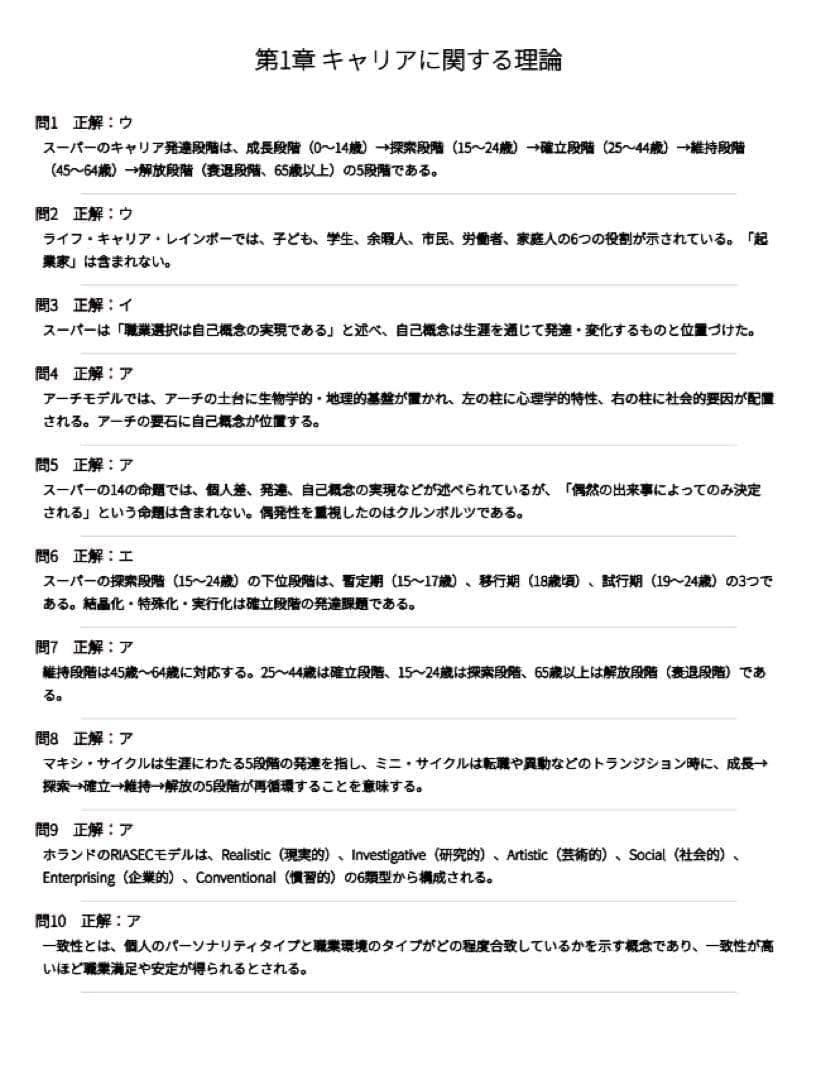 キャリア理論の基礎から、相談技法、法令、倫理、実務対応まで段階的に学習できる構成となっており、試験対策としてはもちろん、就職支援、人材支援、教育、企業内面談などの実務知識の整理にも役立つ内容です。