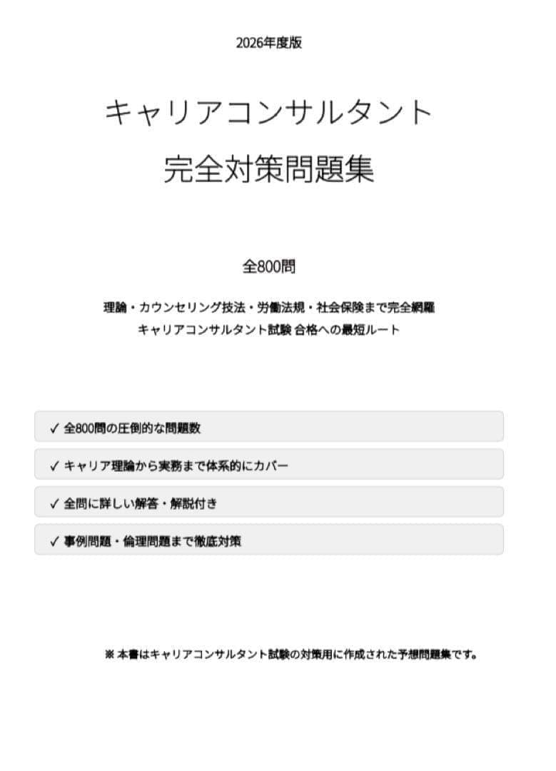 本問題集は、キャリアコンサルタント試験の学習範囲を体系的に整理した