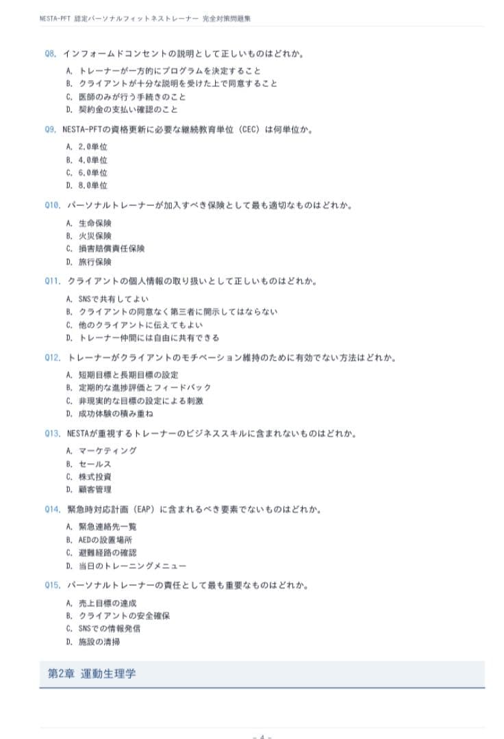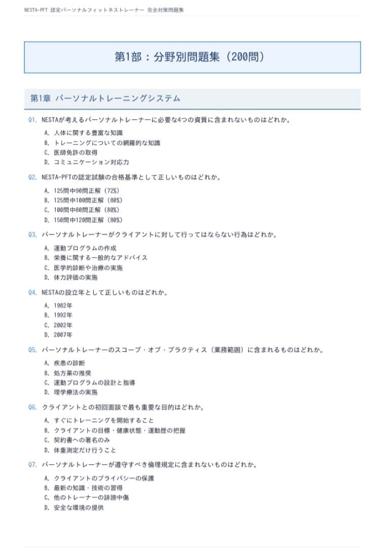 NESTA-PFT 問題集200問 + 模擬試験3回分(各40問) 2026年版