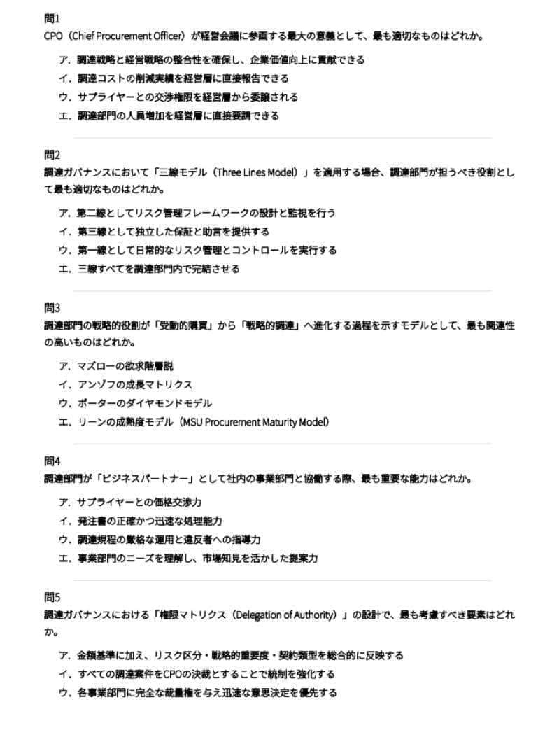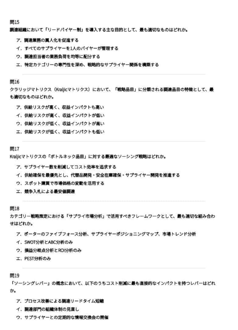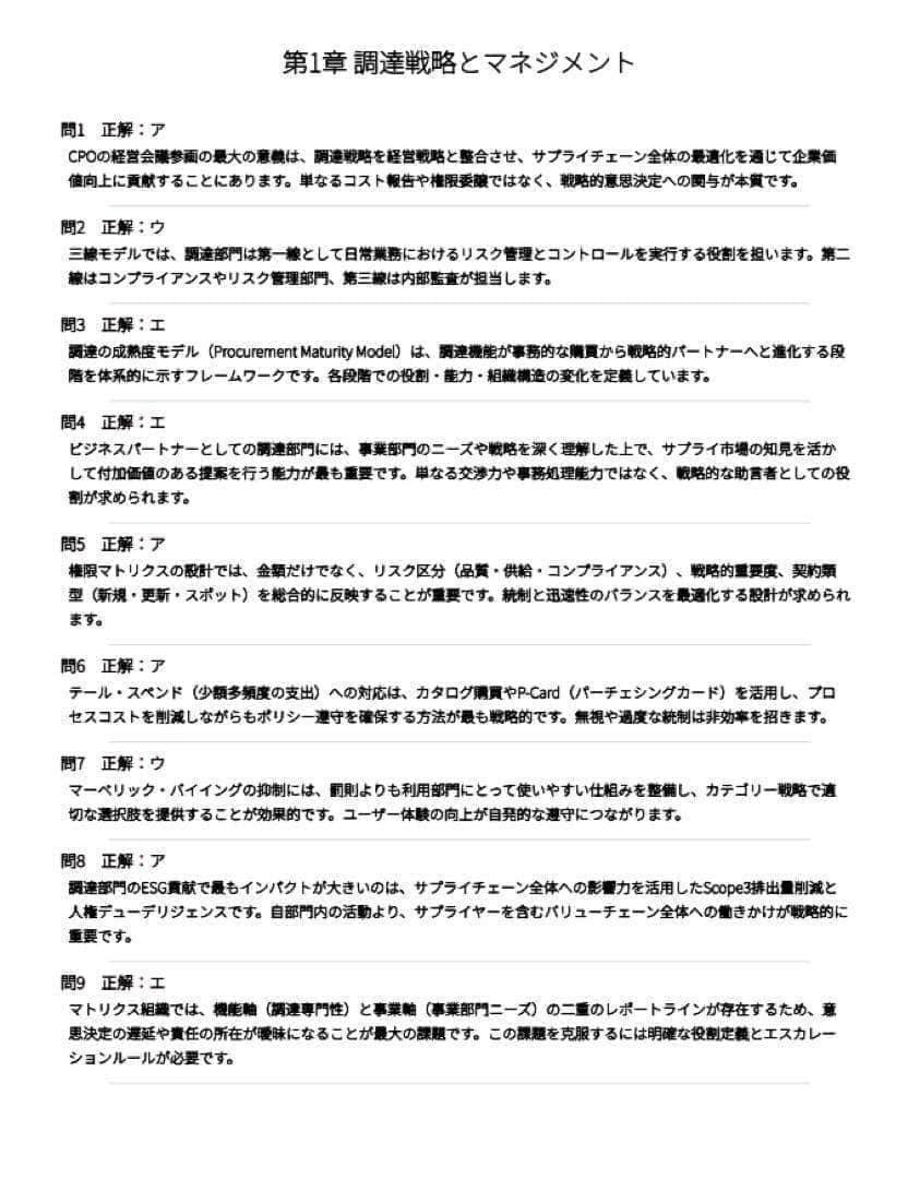 試験対策としてはもちろん、購買・調達部門で求められる実務力の整理にも役立つ内容です。