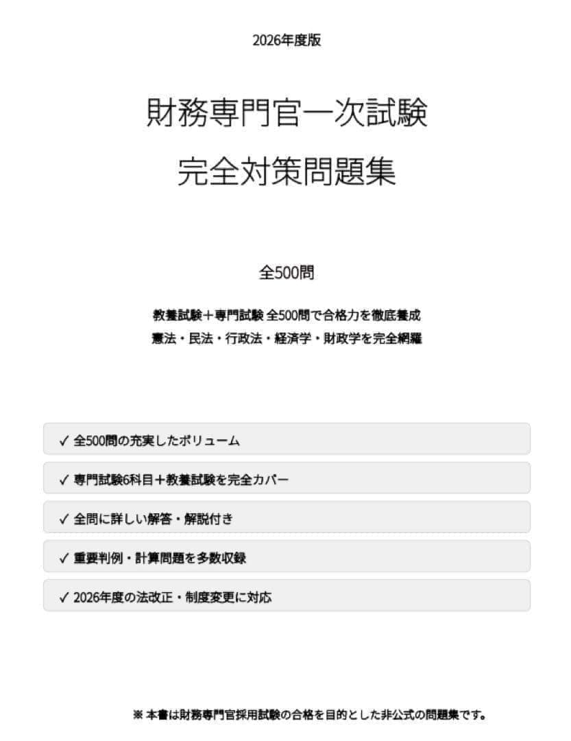 【財務専門官】一次試験対策問題集500問 解答解説付き