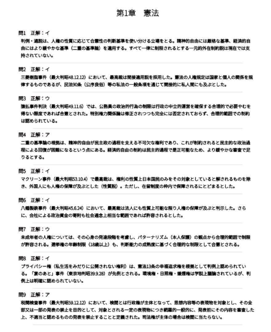 憲法・行政法の主要判例を問う問題を豊富に収録。判例名・判旨・判断基準を解説で丁寧に解説。