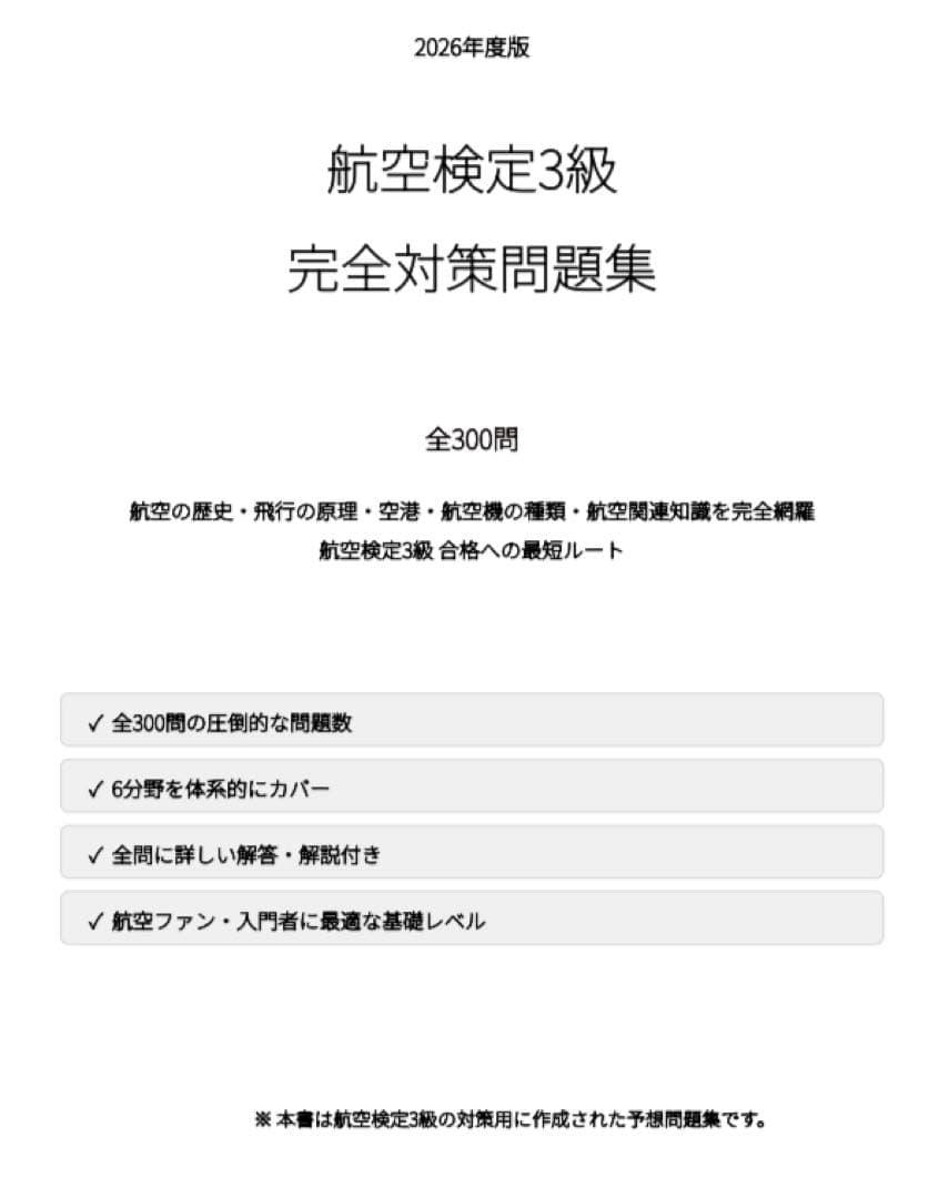 【航空検定3級】試験対策問題集300問 解答解説付き