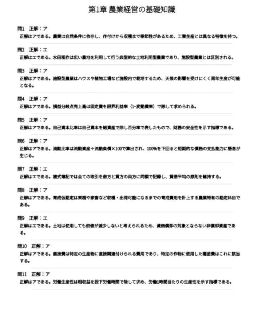 【農業経営アドバイザー】試験対策問題集500問 解答解説付き