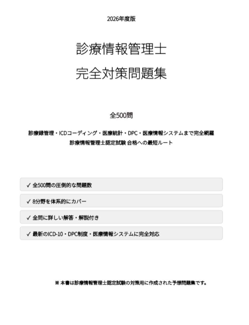 【診療情報管理士】試験対策問題集500問 解答解説付き