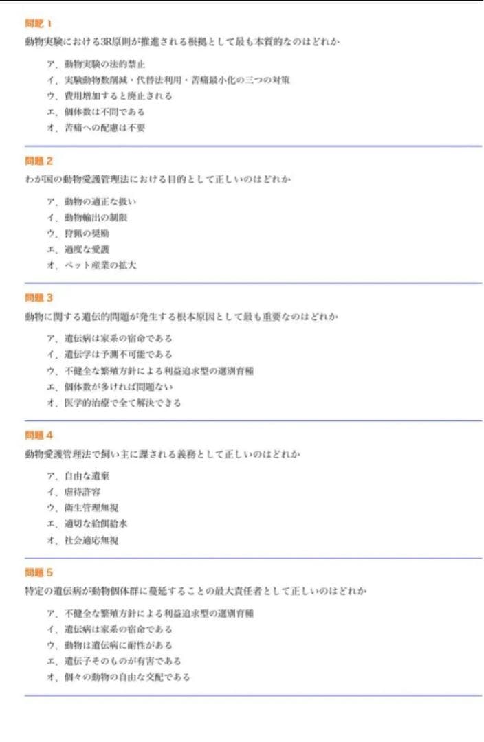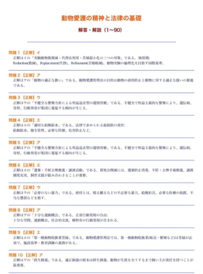 ・動物関連法規の専門知識(191〜260)