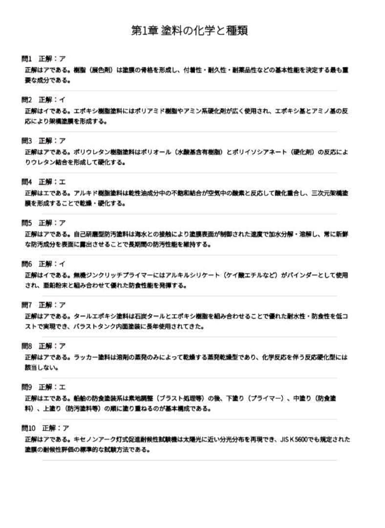 本問題集は、船舶塗料士試験の出題範囲を体系的に整理した試験対策問題集です。