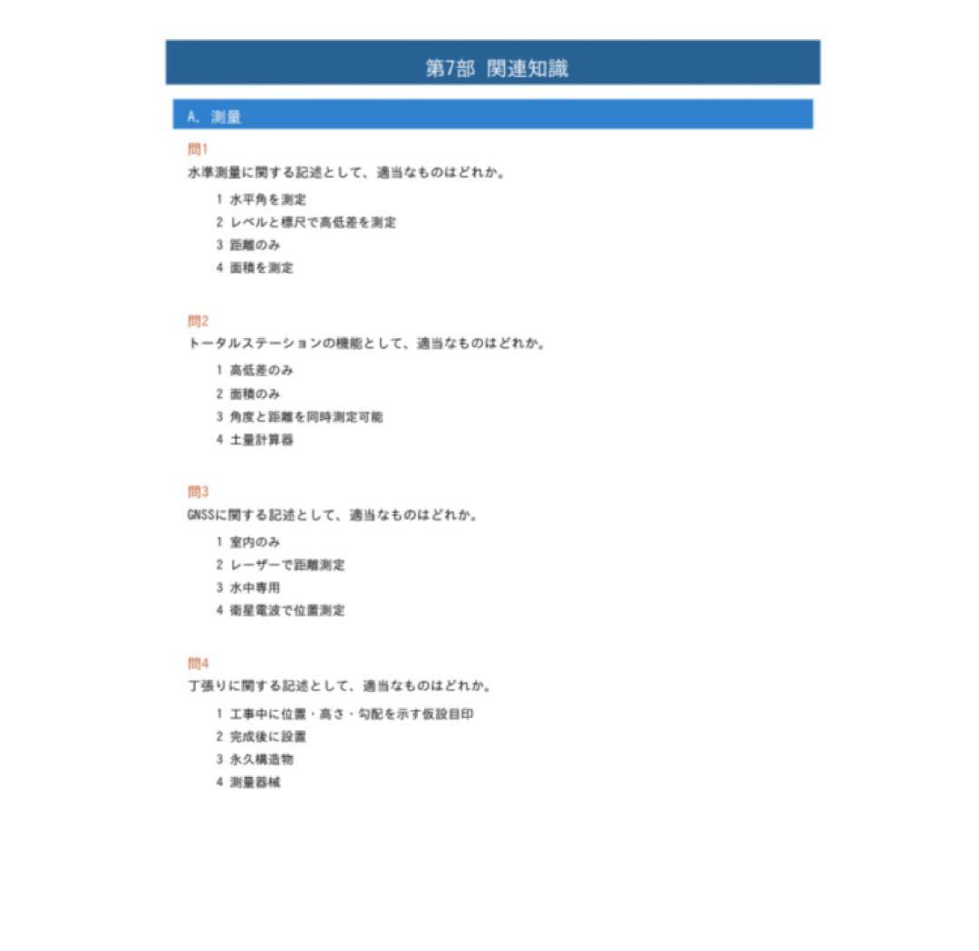 3D設計データを活用した面的管理や自動制御など、近年の試験で頻出となっている最新の施工技術に関する問題を重点的に収録しています。