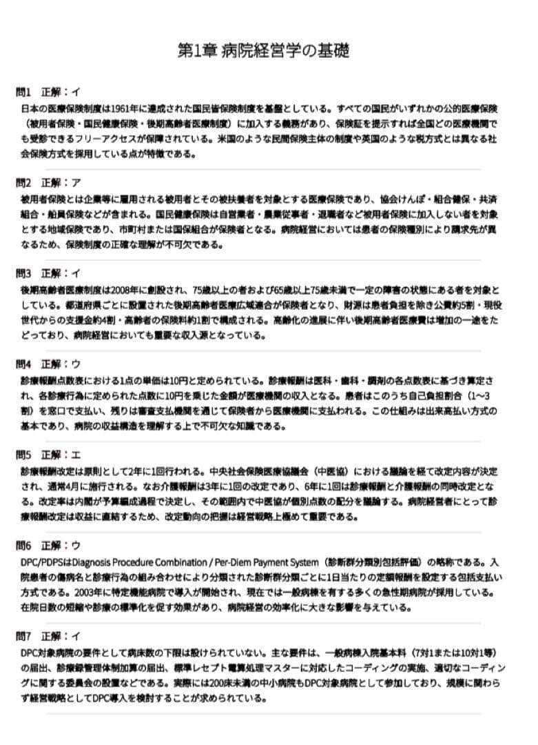 本問題集は、病院経営管理士試験の学習範囲を体系的に整理した
