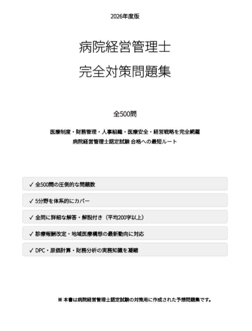 【病院経営管理士】試験対策問題集500問解答解説付き