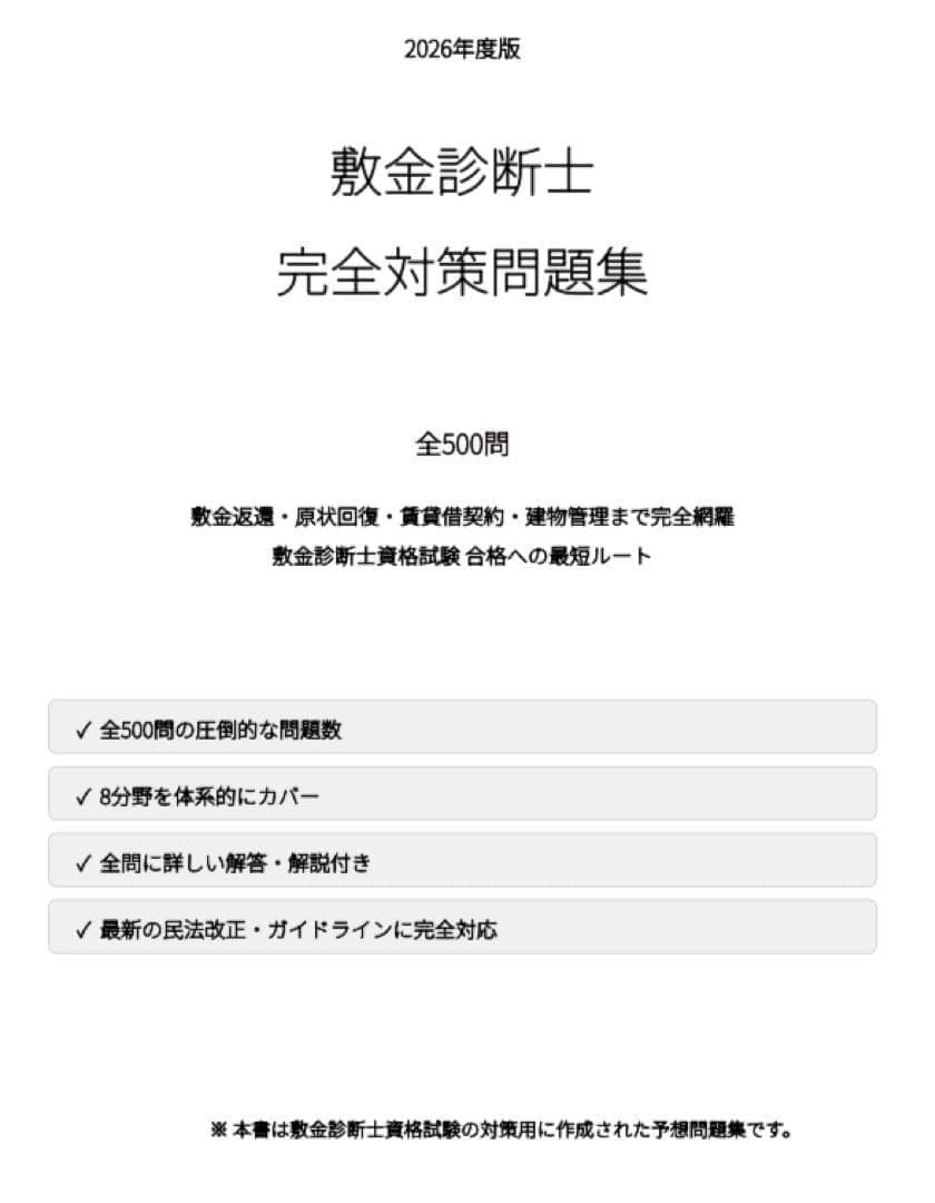本問題集は、敷金診断士の重要論点を体系的に整理した
