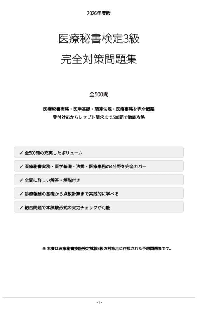 【医療秘書検定3級】試験対策問題集500問 解答解説付き
