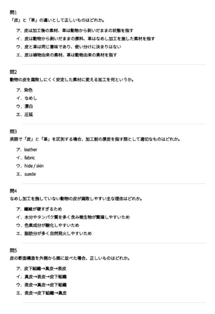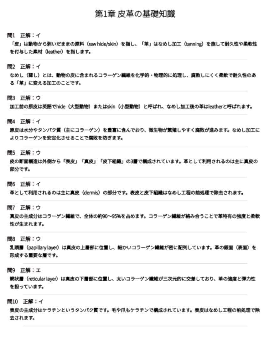 【レザーソムリエ ベーシック】試験対策問題集 500問 解答解説付き