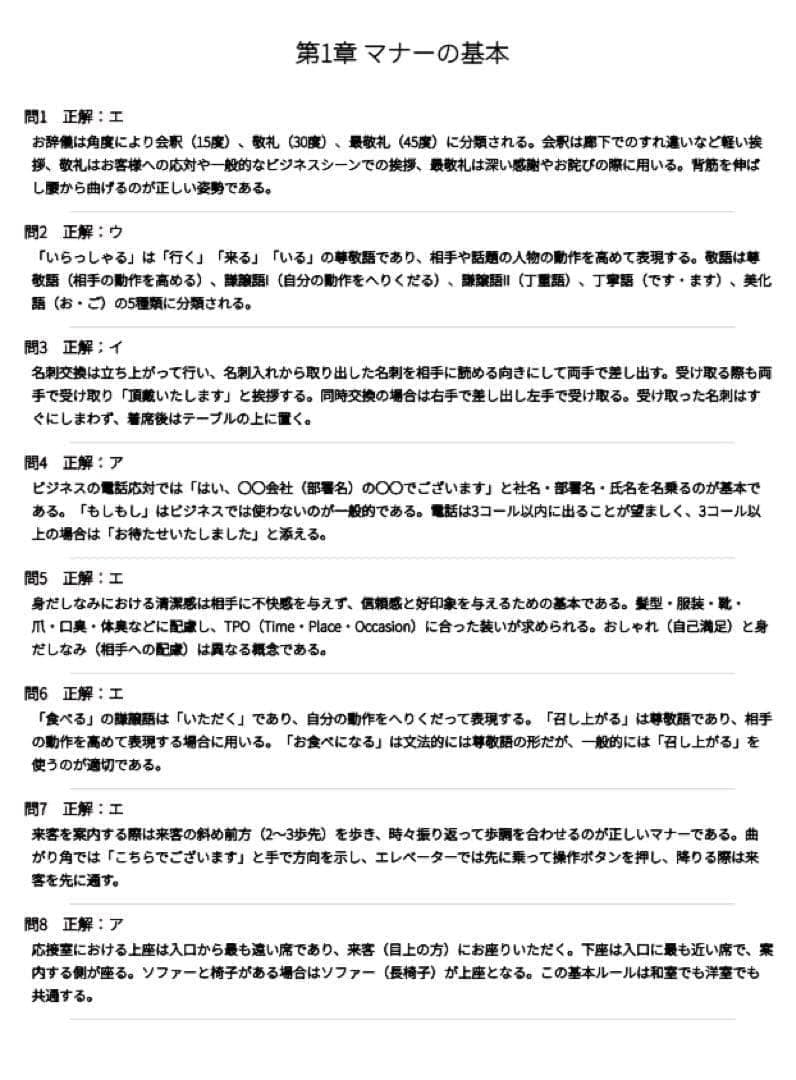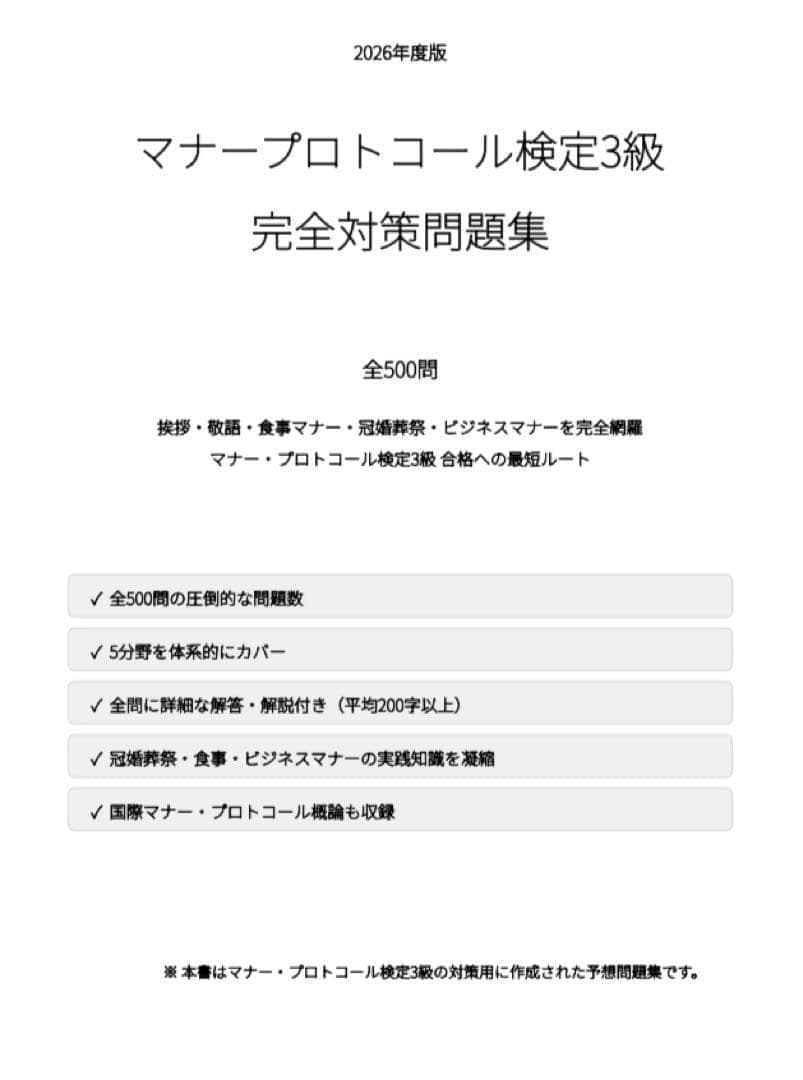本問題集は、マナープロトコール検定3級の重要論点を体系的に整理した