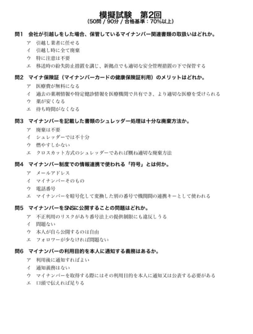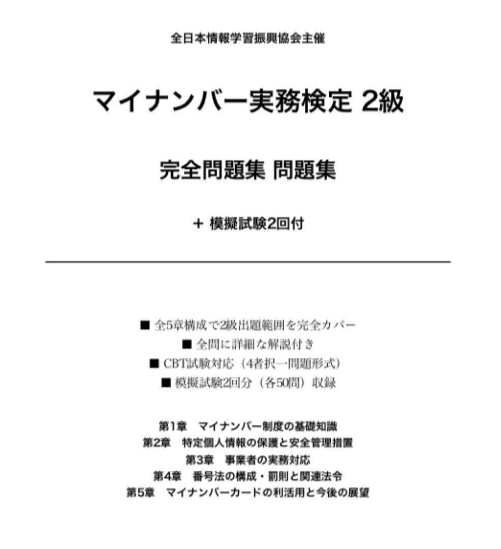 【マイナンバー実務検定2級】試験対策問題集300問模擬試験50問×2計400問