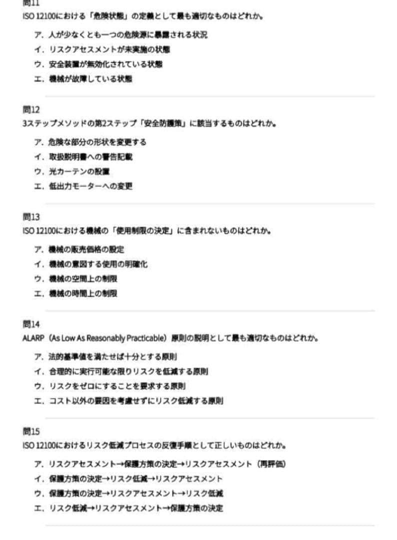 ISO 12100のリスクアセスメントから3ステップメソッドまで、機械安全の根幹をなす基本概念を70問で徹底学習。