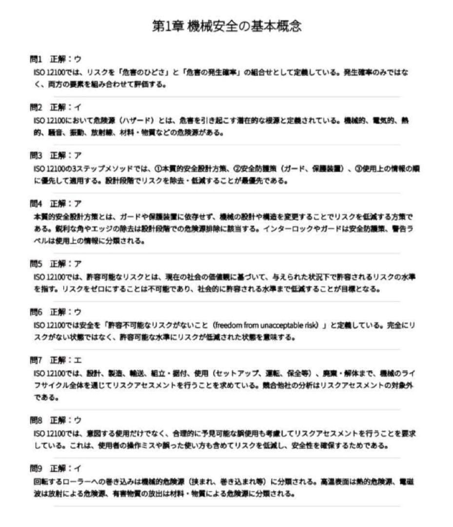 ISO 13849、IEC 62061、IEC 61508など、試験で問われる主要規格を65問で網羅的に解説。