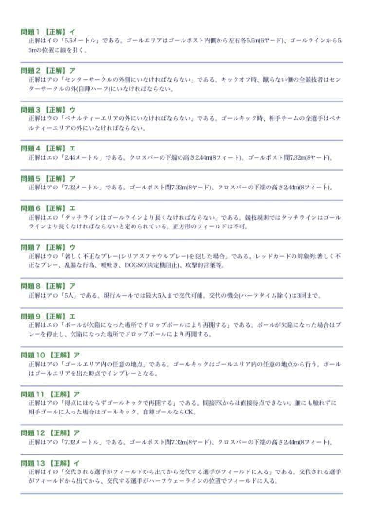 【サッカー審判員4級】試験対策問題集300問 解答解説付き