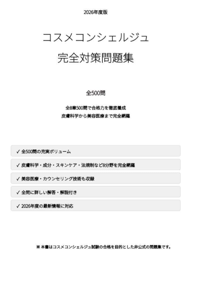 【コスメコンシェルジュ(日本化粧品検定特級)】試験対策問題集500問解答解説付き