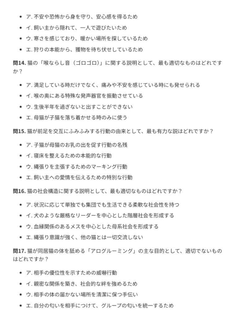 【ねこ検定 中級】試験対策問題集300問 解答解説付き