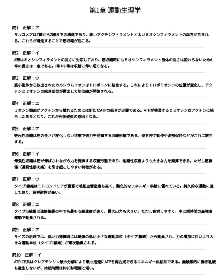 身体の構造理解から、評価、指導、プログラム作成、安全管理まで、試験範囲を一通り整理しやすい構成です。